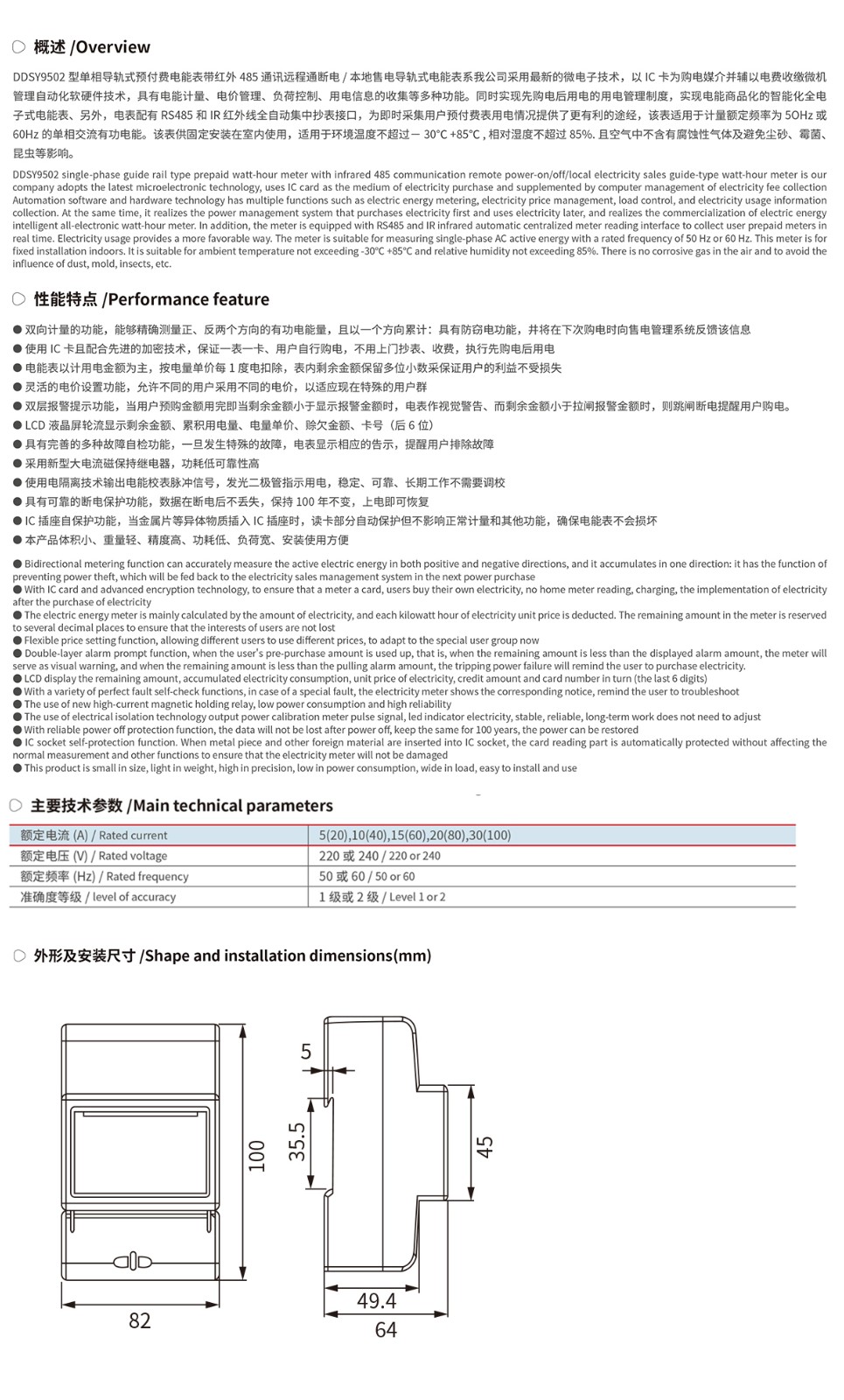 DDSY9502型单相导轨式预付费电能表
